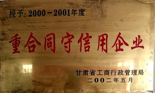 2002年5月公司被甘肅省工商行政管理局授予“重合同守信用企業”;