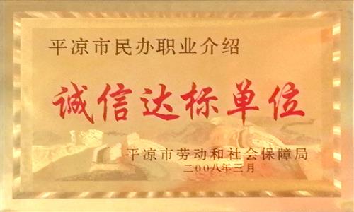 2008年公司職業介紹所被平涼市勞動和社會保障局評為“誠信達標單位”;